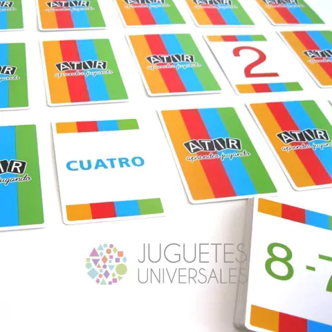 Juego didáctico que incentiva el desarrollo de la memoria, atención, concentración, habilidades lógico matemáticas (calculo mental, suma, resta, multipliación, fracción, par/impar, mayor/menor y seriación), funciones ejecutivas (anticipación, automonitoreo, memoria de trabajo, planificación, selección y aplicación de estrategias) e integración social. Trae 48 cartas y un manual de instrucciones con 12 juegos diferentes con distintos niveles de dificultad: La torre, Mayor o menor, Memocard, El desparejo, ¿Que número es?, Semejanzas, Semejanzas oculta, La escalera, Bingo numérico, El descarte, Variando, Cuatro. Todas las cartas tienen un valor numérico del 0 al 10. Diseñado para jugar de 2 a 4 juguadores, en caso de más niños armar equipos. Las cartas poseen 4 motivos que indican su valor: Numeros en color rojo, palabras en color celeste, sumas en color amarillo y restas en color verde. Hay cartas con todos los números, son los comodines. Recomendado a partir de los 5 años.
