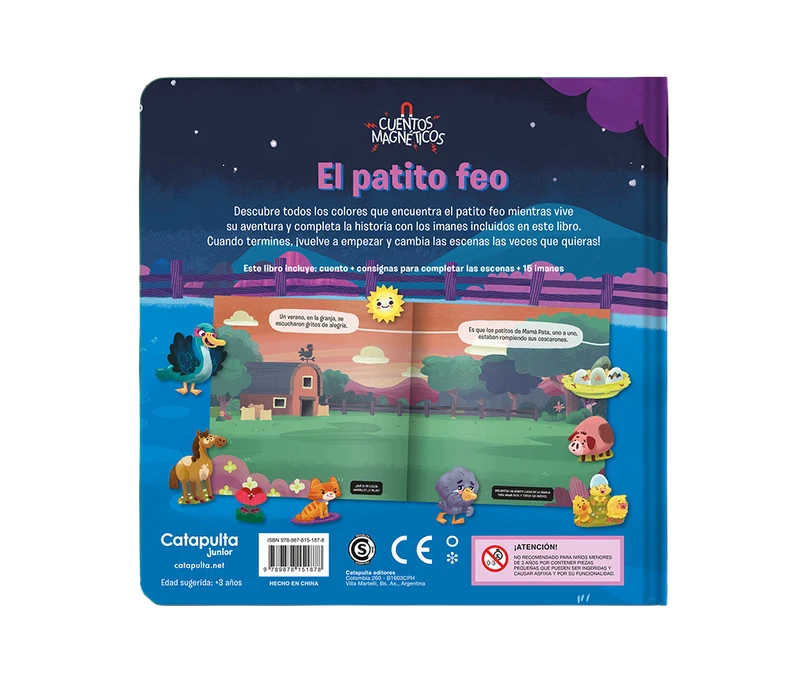Descubre todos los colores que encuentra el patito feo mientras vive su aventura y completa la historia con los imanes incluidos en este libro. Cuando termines, ¡vuelve a empezar y cambia las escenas las veces que quieras!