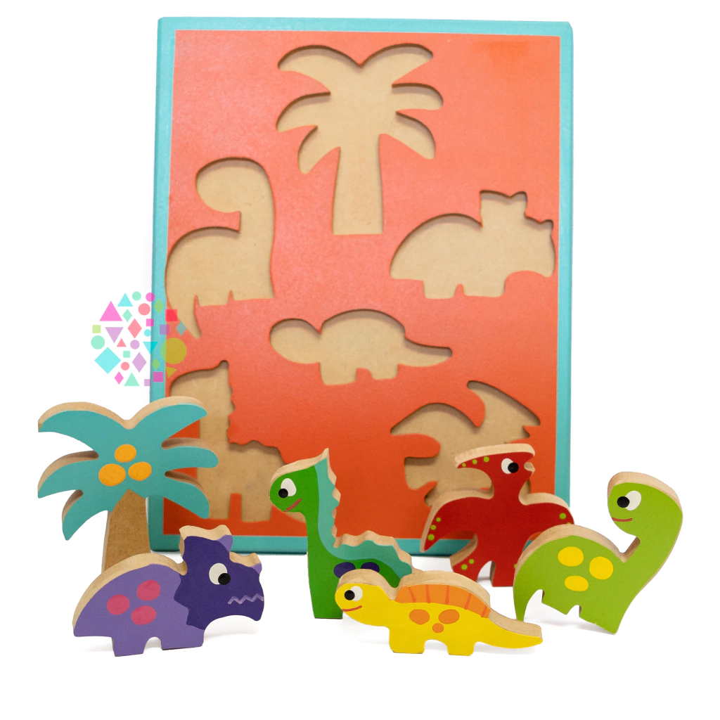 Este lindo encastre pintado a mano cuenta con 6 piezas y una base donde encastran (sin hacer fuerza). Los animales quedan en relieve con respecto a la base. Además cada animalito se puede parar y jugar en 3d. Este juguete estimula la motricidad fina y el reconocimiento visual de las formas.