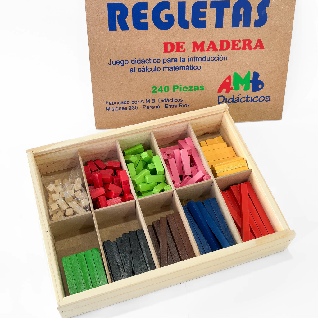 Las Regletas son un versátil juego de manipulación matemática destinado básicamente a que los niños aprendan la composición y descomposición de los números e iniciarles en las actividades de cálculo, todo ello sobre una base manipulativa y lúdica. El material consta de un conjunto de regletas de diez tamaños y colores diferentes. La longitud de las mismas va de 1 a 10 cm. Cada regleta equivale a un número determinado.