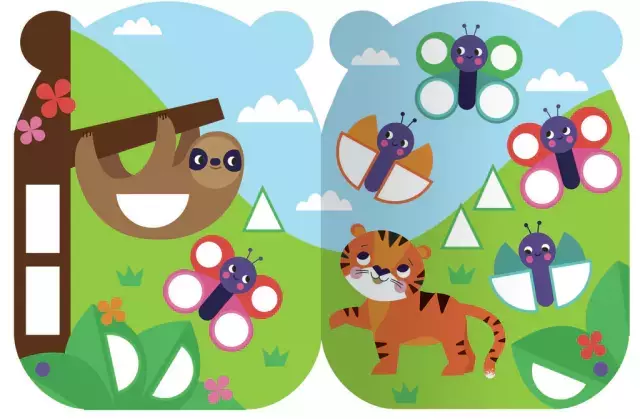 Más de 300 stickers reutilizables de formas geométricas, que sirven para completar la historia del pequeño tigre y del adorable panda. Una manera divertida de poner en práctica la motricidad fina.