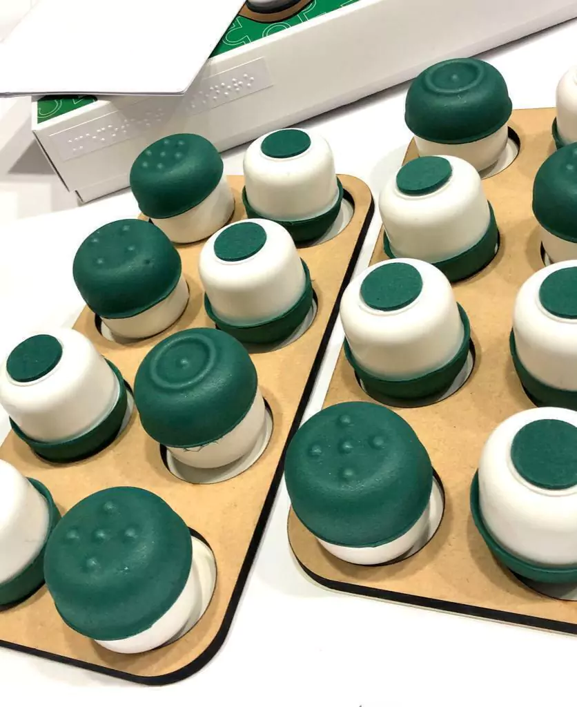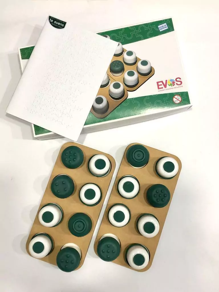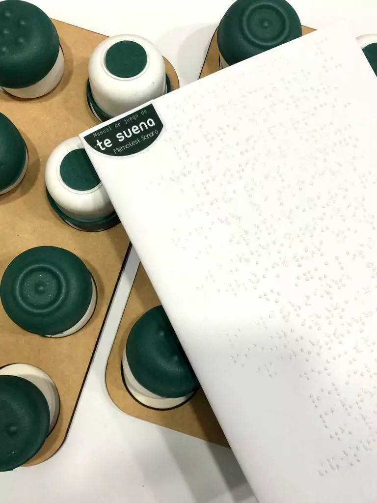 Se utiliza escuchando los sonidos de las fichas, para reconocer aquellas que son iguales. Ademas en la parte inferior cada par tiene una textura especifica, por lo que tambien podria jugarse solo con el tacto.